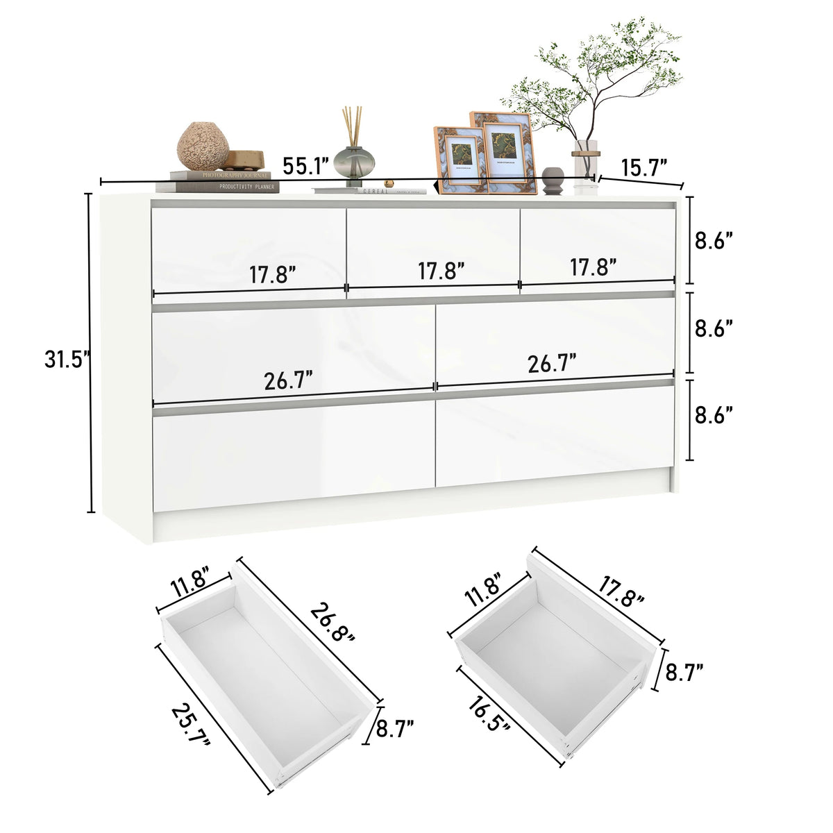 Inform when this item available 55" Modern 7-Drawer Dresser with High Gloss Finish