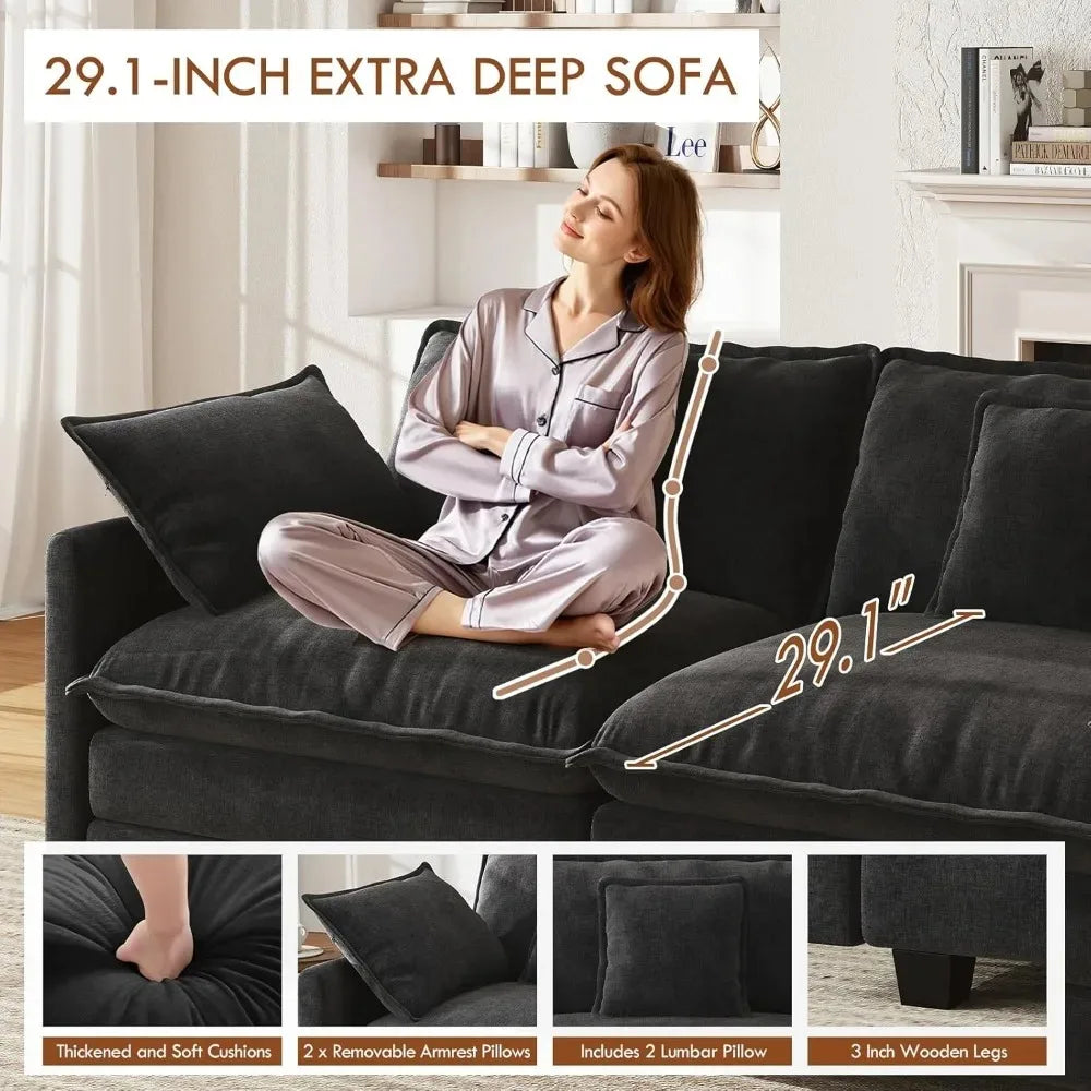 77" L-Shaped Cloud Sofa with Ottoman – Comfy Chenille Modular Sectional