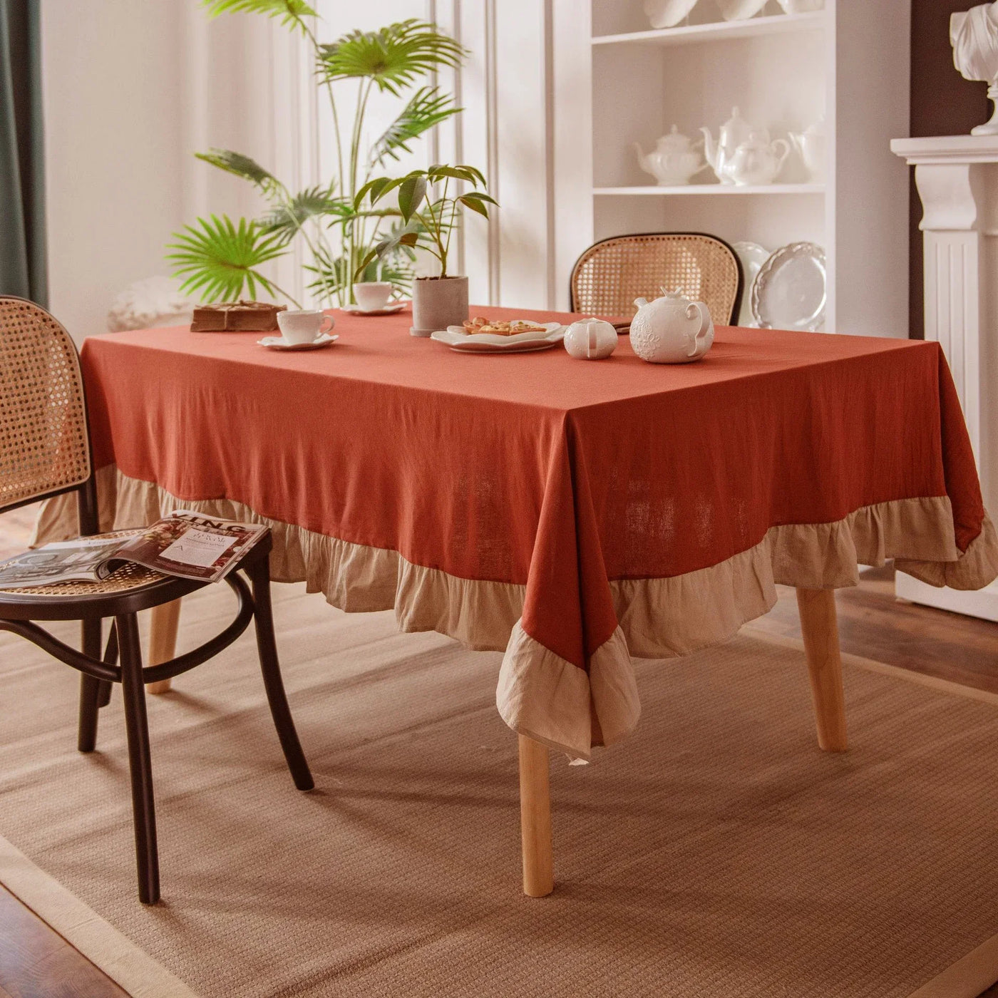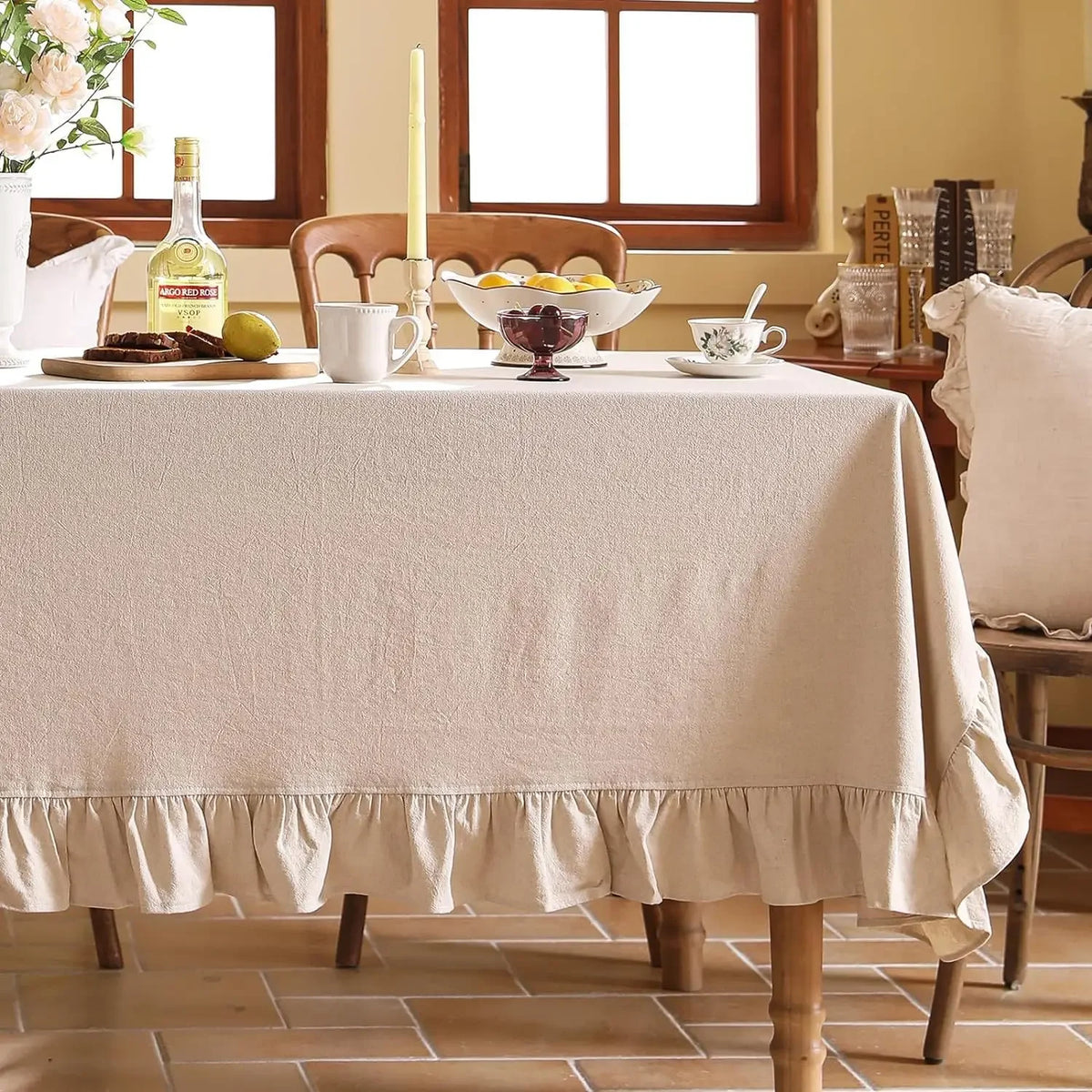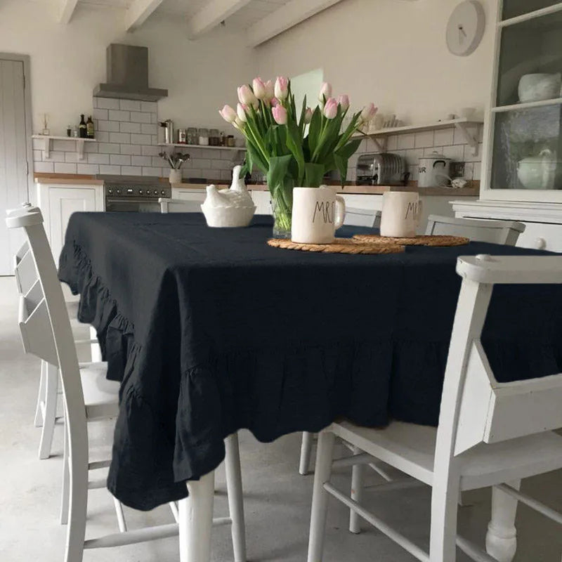 Inform when this item available 100% Cotton Washable Tablecloth – Elegant Flounce Stitching for Wedding, Party, Dining & Banquet Decoration