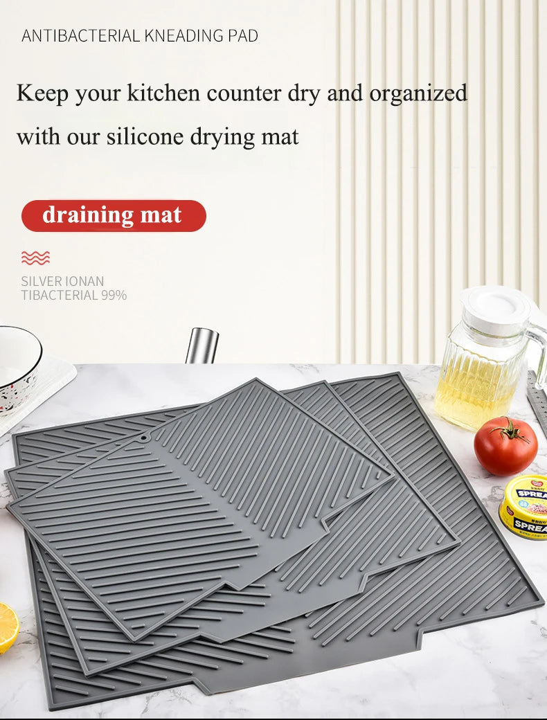 Heat-resistant silicone draining pad for drying dishes, pots, and utensils