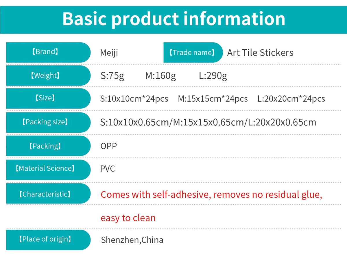 Inform when this item available 24PCS Light Color Tile Stickers – Waterproof Self-Adhesive Wall Decals