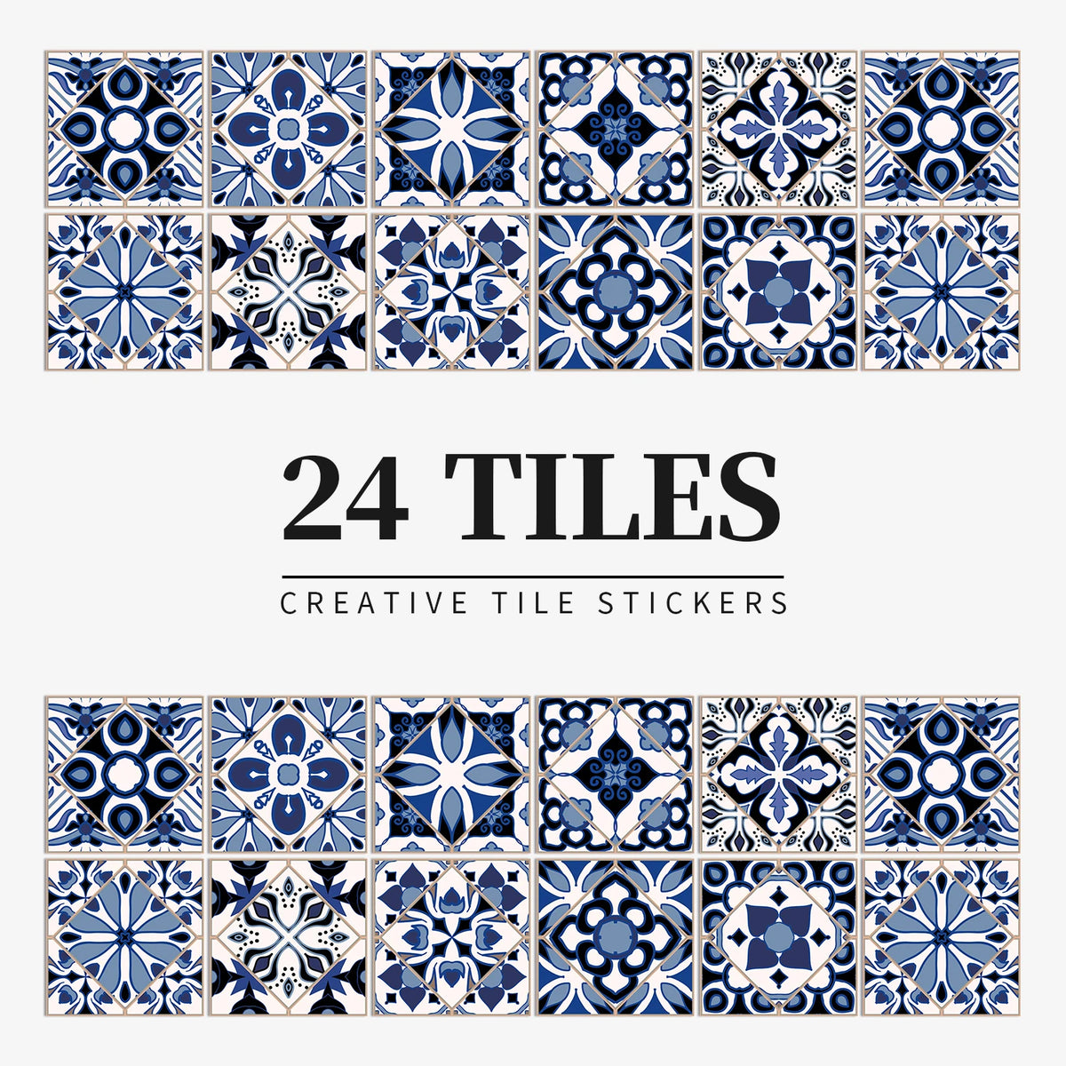 Set of 24 light-colored tile stickers for kitchen, bathroom, or home walls